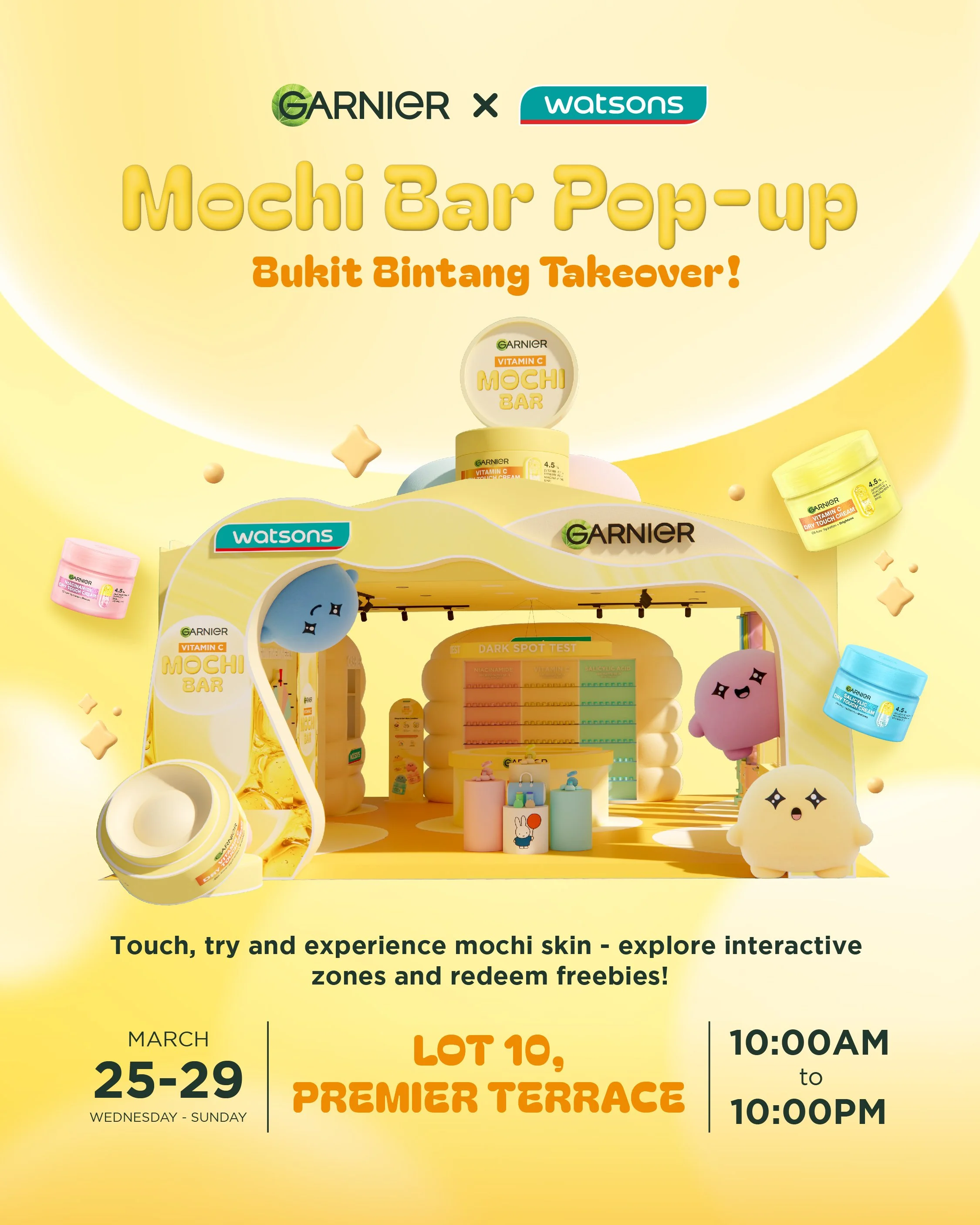To celebrate the launch, Garnier is bringing the Mochi Dry Touch Cream experience to life with a limited-time Garnier Mochi Bar in Bukit Bintang. From 25th to 29th March 2026, drop by Lot 10 Premier Terrace from 10am to 10pm daily for an immersive, hands-on experience.